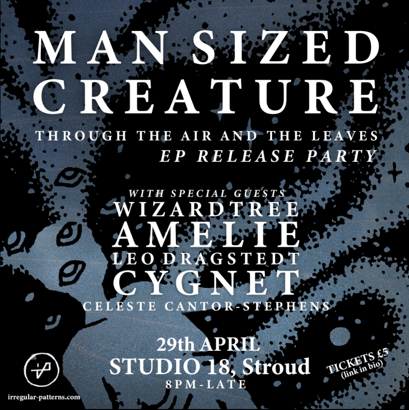 Coinciding with their live event tonight at Studio 18, Stroud, Man Sized Creature release the new track Oilseed Hymn, which is available via Bandcamp and the usual streaming platforms. Information on Through The Air And Leaves EP release party below.